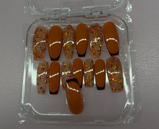 Autumn Luxe French – Brown & Gold Glitter Press-On Nails | Austin, TX (Size Small, 14pc Set)