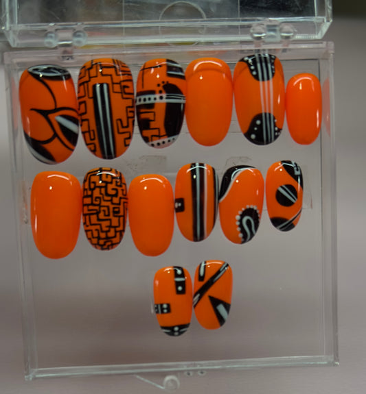 Art Girl Orange – Abstract Acrylic Press-On Nails | Austin, TX (Size Medium, 14pc Set)