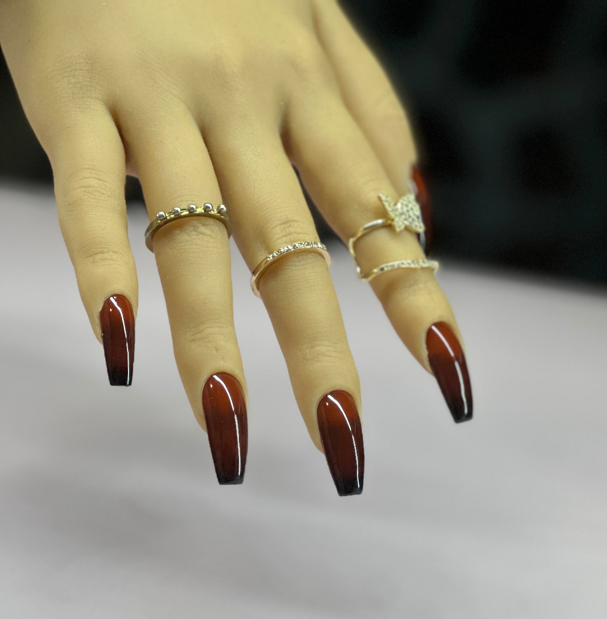 Chocolate Ombré Press-On Nail Set (Medium Coffin)