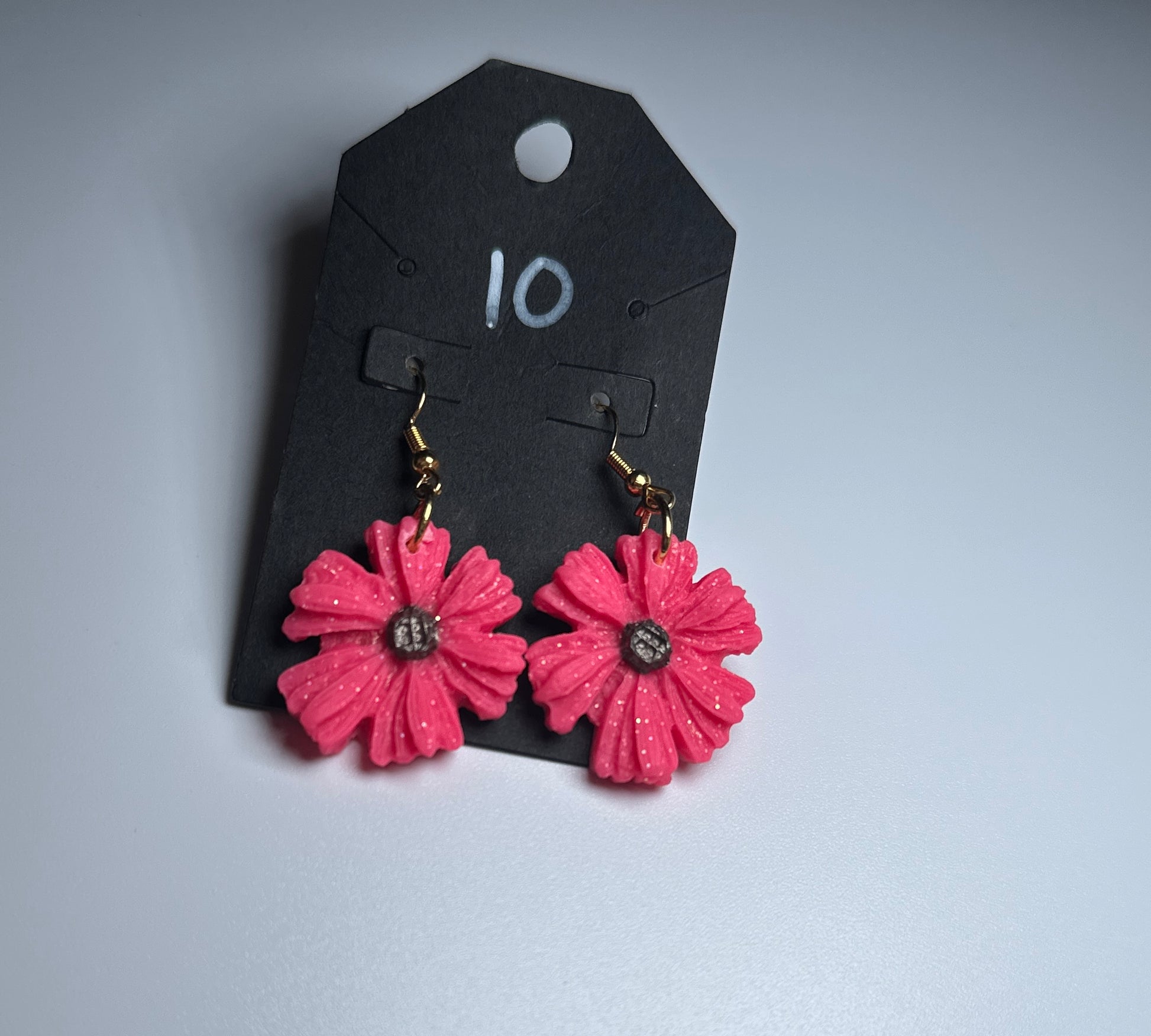 LBN “Bloom Babe” Hot Pink Flower Dangle Handmade Clay Earrings