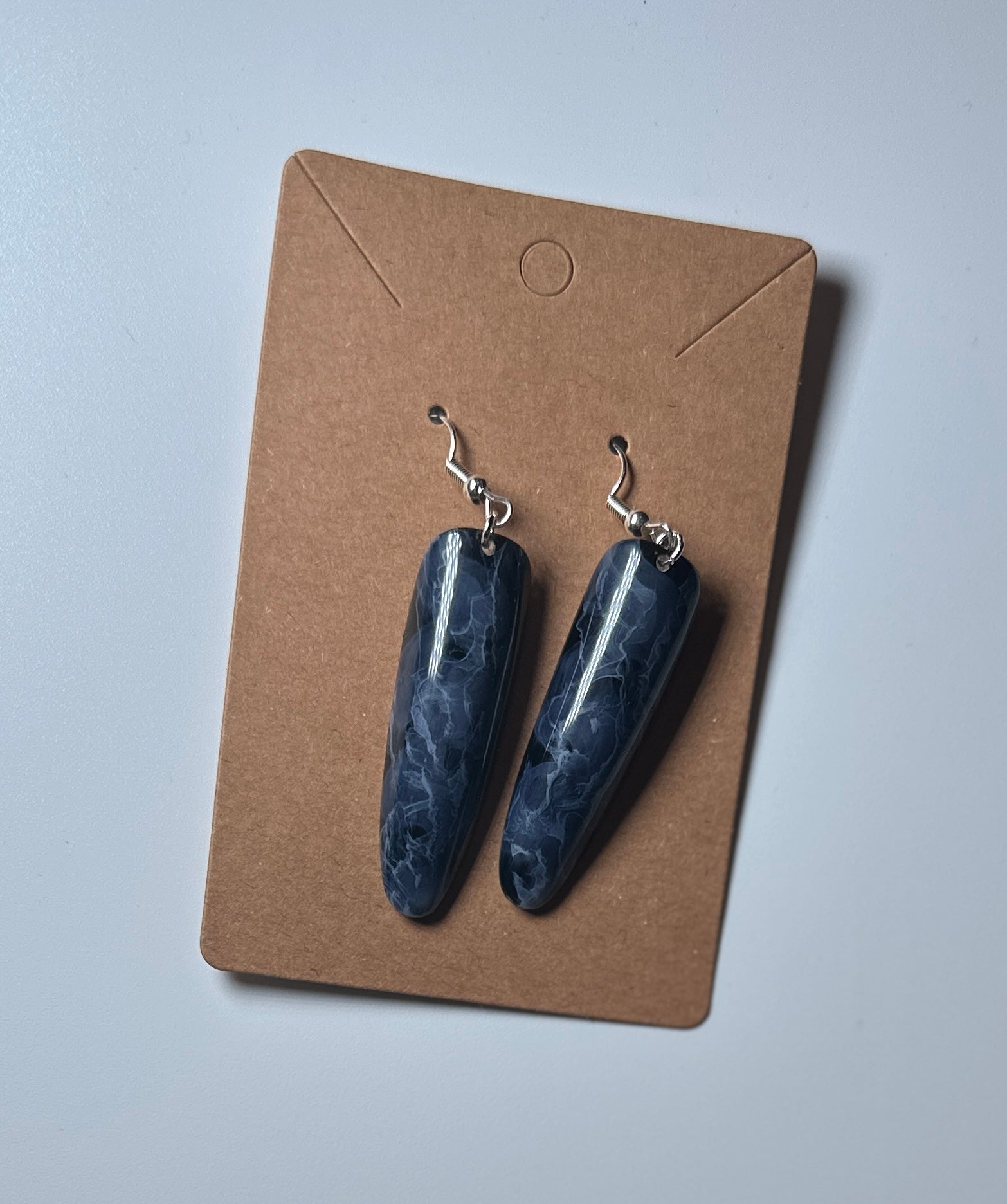 Elevate your look with our Midnight Marble earrings sleek, moody, and mysteriously elegant. Designed with a deep navy-black base swirled in white marbling, these handmade press-on nail earrings deliver a subtle statement with a bold edge.