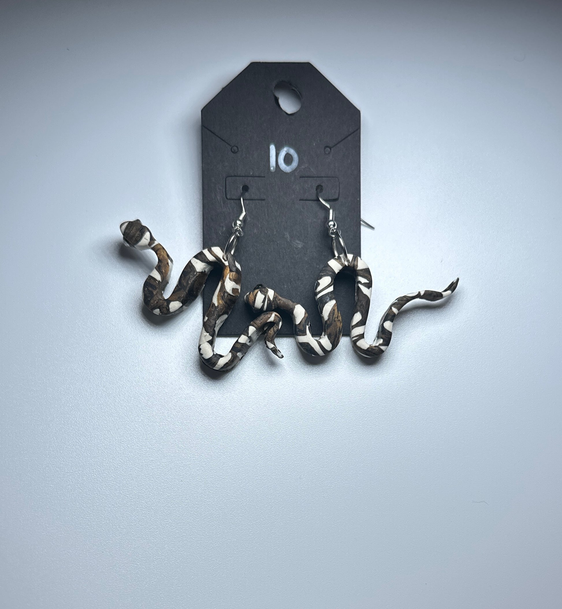 Snake Dangle Earrings – Handmade Clay Serpent Jewelry for Bold Style