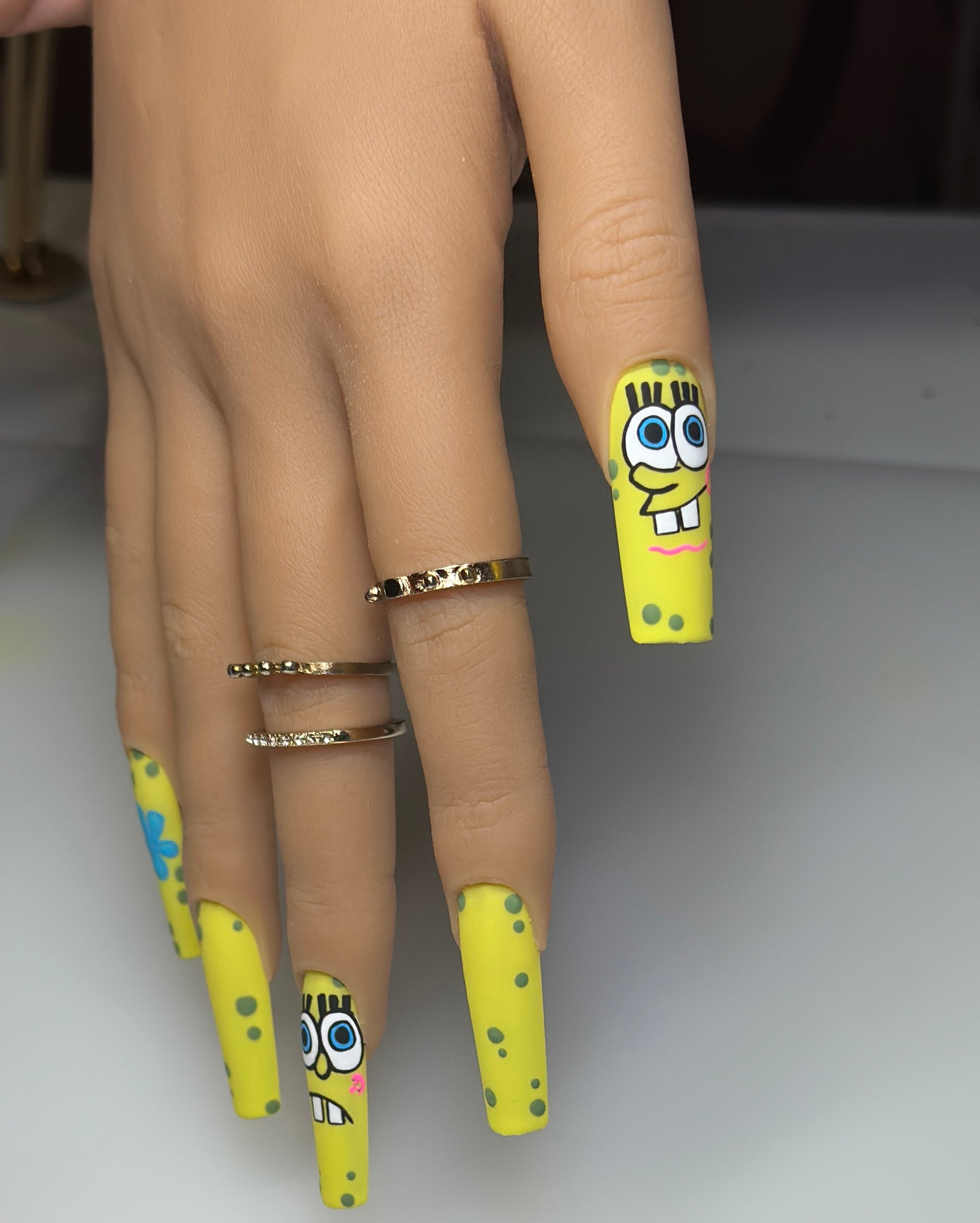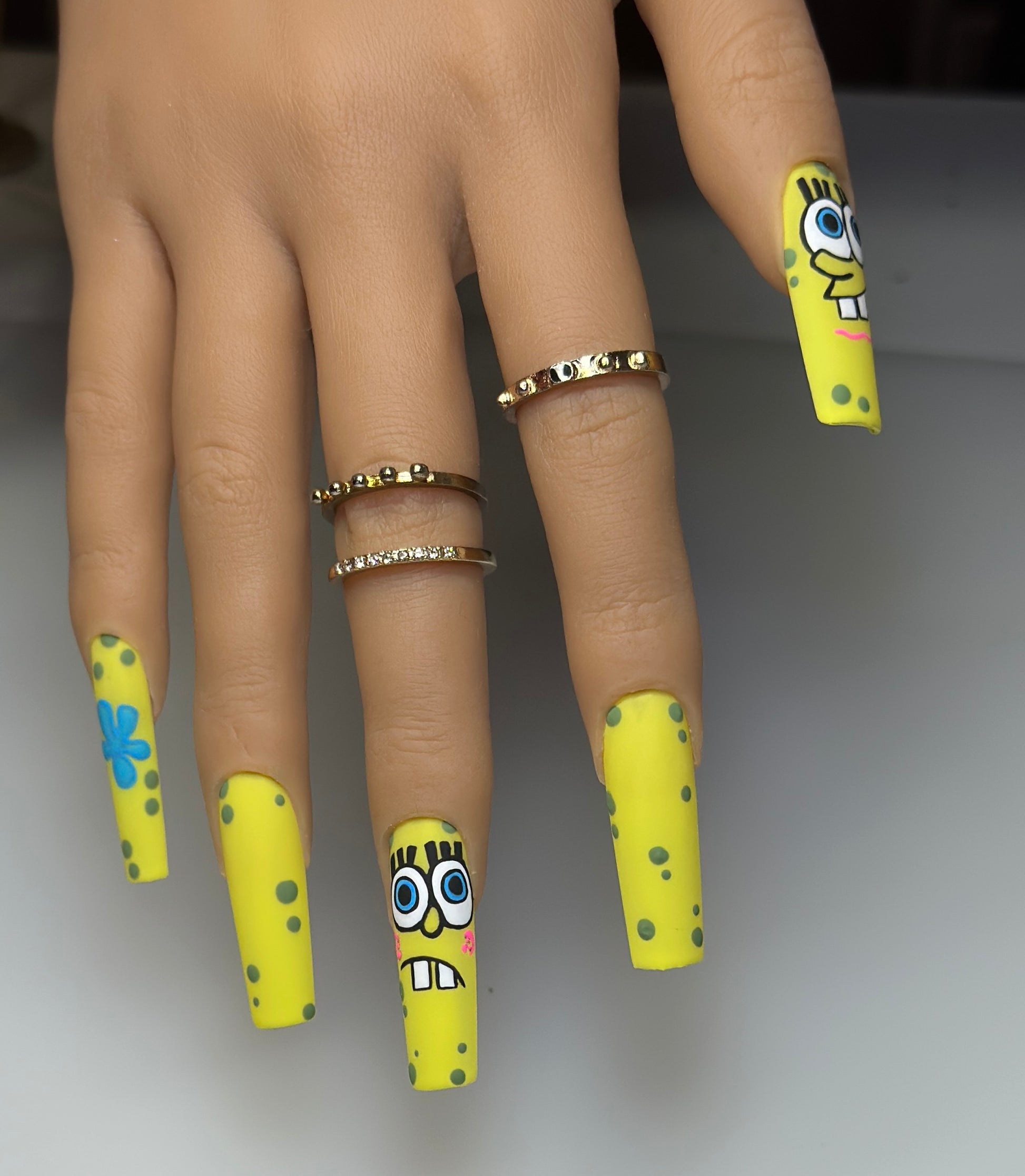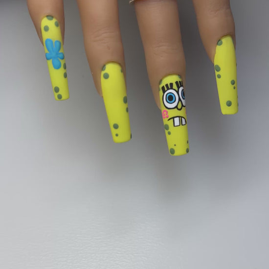 Get ready to stand out with our SpongeVibes press-on nail set! Inspired by the playful charm of Spongebob, this vibrant yellow set features hand-painted cartoon details, a matte finish, and bold polka-dot accents. Perfect for themed events, cartoon lovers, or anyone who wants their nails to smile back!